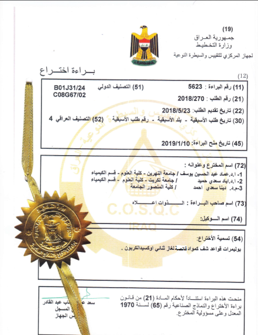 تبارك كلية المنصور الجامعة حصول الدكتورة التدريسية في قسم هندسة تقنيات الأجهزة الطبية د. دينا سعدي أحمد على براءة اختراع في مجال خزن الغازات وفق كتاب وزارة التخطيط/الجهاز المركزي للتقييس والسيطرة النوعية ذي الرقم 5623 مسجل عليها اسم كليتنا العريقة, وبهذه المناسبة لا يسعنا الا ان نبارك للدكتورة هذا الانجاز الكبير المتميز متمنين لها دوام التفوق في مسيرتها العلمية.