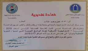 شارك التدريسي عمر سعد في الندوة العلمية الفصلية الاولى لعام 2019 م الذي أقامه مركز الدراسات الاستراتيجية والدولية في جامعة بغداد بعنوان (الاستراتيجية الامريكية تجاه البرامج النووية في آسيا: كوريا الشمالية وايران) وذلك يوم الاحد الموافق (17/3/2019 م).