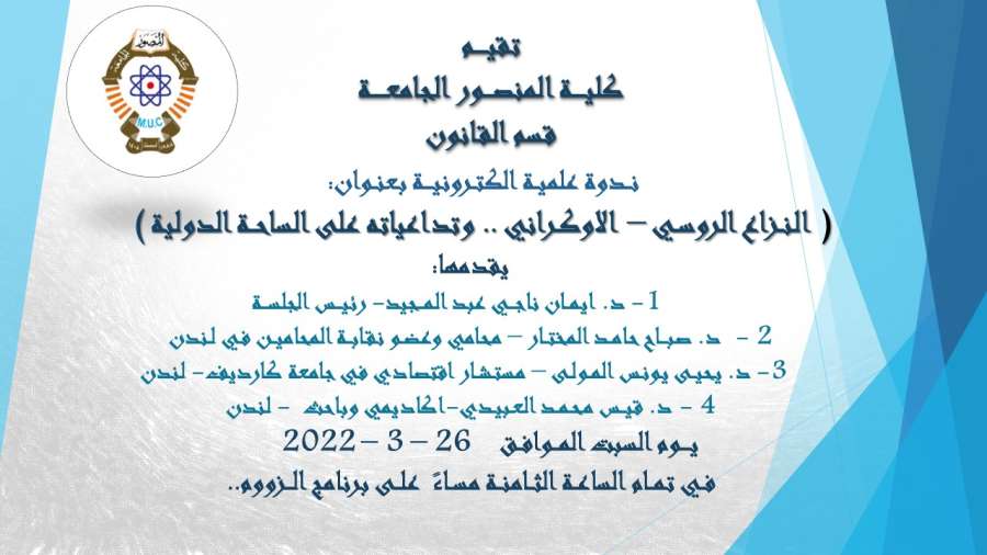 وذلك يوم السبت الموافق ٢٦ / ٣ / ٢٠٢٢ في تمام الساعة الثامنة مساءً وعلى منصة الزوم على الرابط ادناه