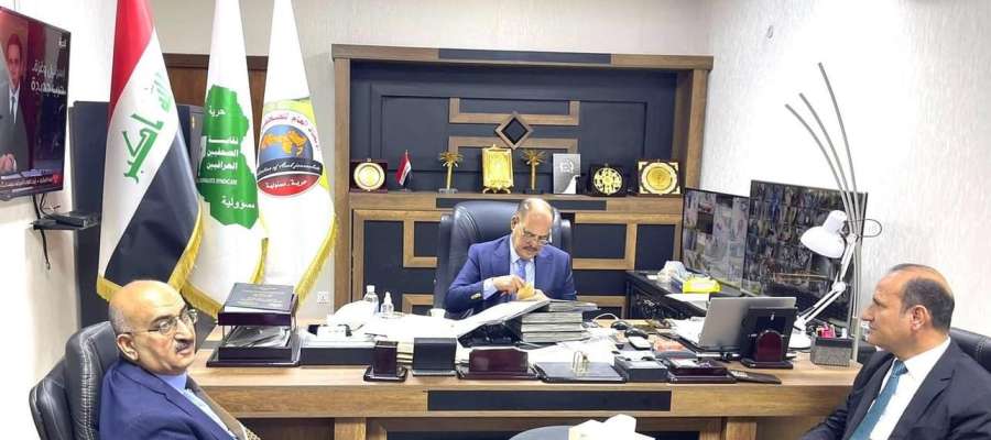 Professor Muayad Al-Lami, Head of the Iraqi Journalists Syndicate, received a delegation from Al-Mansour University College, which included Dr. Muhammad Falhi, Head of the Department of Digital and Teaching Media, M.M. Faisal Abdul Mohsen Reda. During the meeting, ways of cooperation between the two sides were discussed, the union’s support for digital media graduates, and facilitating the procedures for accepting professional journalists into the department by endorsing their media service by the union. The meeting was attended by Dr. Hassan Al-Aboudi, Secretary of the Journalists Syndicate.