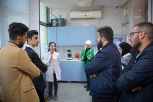 Based on the memorandum of cooperation with Baghdad Al-Ahli Hospital, today, several students from the fourth stage of the Department of Medical Device Technology Engineering at the college, under the supervision of the department’s teachers (M.M. Ali Qutaiba Abdel-Razzaq and M.M. Omar Abdel-Hussein Abdel-Razzaq) made a scientific field visit. The hospital provides the opportunity for our dear students to explore the depths of the specialty through field observation and access to the hospital’s various departments and facilities, from the laboratory, which contains various testing devices for blood, viruses, cross-matching, and other laboratory devices. It was explained to the radiology department where the helical scanner was fixed, and Mobile X-ray devices and the operator needs of Radiation protection procedures were taken, after which we moved to the catheter surgery department, where a direct interventional operation was witnessed and clarification and explanation by the specialist doctor to the ophthalmology department and viewing optical examination and laser devices for small, simple eye operations. Mr. Hussein Mumtaz, Director of Public Relations at the hospital, received the students and teachers. Dr. Musa Suhail