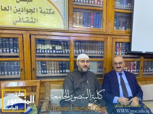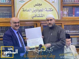 Assistant Professor Dr. Mohamed Falahi, Head of Digital Media Department at Mansour University College, gave a cultural lecture in the monthly cultural capital of Al-Jawadin Library.The lecture was titled (Intellectual and Media Outcomes in the Face of Terrorism and Extremism) amidst the presence of professors and researchers organized by Sheikh Dr. Emad Al-Kazemi, the librarian and the supervisor of the esteemed council.After the seminar, there was a talk with Sheikh Al-Kazemi about the history of the Al-Jawadin Library and its founder, the late Mr. Heba Al-Din Al-Shahrastani (died in 1996) and what it contains intellectual and heritage treasures of books, magazines and newspapers that should be of the attention of researchers and intellectuals, and the library is located in the corridors of the holy Kadhimiyah threshold.The monthly cultural council holds its seminar every Thursday at the beginning of the month, and it has been held since 2008 to now 139 sessions, usually attended by thinkers, researchers, intellectuals and media, and presents to the council diverse intellectual and cultural topics.The librarian invited students of media to visit this distinctive library and navigate its shelves full of science, knowledge and culture, whose books were classified according to the (Dewi) decimal rating and then listed both on paper and electronically to facilitate access to information by researchers.