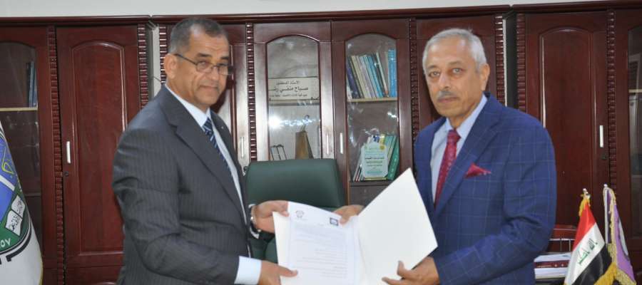 In light of the directives of the Ministry of Higher Education and Scientific Research to develop the work of academic institutions and advance them by signing twinning and joint cooperation agreements. With the authorization of the Dean of Al-Mansour University College, Professor Dr. Sabah Muhammad Kallo, Professor Dr. Ahmed Omar Ahmed, Head of the Business Administration Department at the college, visited the College of Management and Economics - University of Baghdad to attend the signing ceremony of a twinning and joint cooperation agreement between the Business Administration Department in our college and the aforementioned college. With God’s blessing, the agreement was signed on Sunday morning, 2/6, by Professor Dr. Sabah Manfi Reda, Dean of the College of Administration and Economics, in the presence of Dr. Ali Adnan, Director of the Scientific Affairs Unit at the aforementioned college. It is valid for one year, subject to renewal.