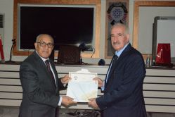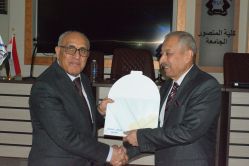 وفي الختام تم تكريم الضيف الاستاذ الدكتور عبد الباسط تركي الحديثي والاستاذ الدكتور أحمد عمر أحمد من قبل السيد عميد الكلية بدرع التميز وشهادات تقديرية على جهودهم العلمية في المساهمة بالندوة