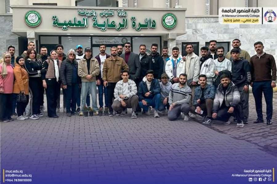 بناء على توجيهات وزارة التعليم العالي والبحث العلمي وعمادة كلية المنصور الجامعة اجرى رئيس قسم التربية البدنية وعلوم الرياضة البدنية وعلوم الرياضة زيارة علمية الى وزارة الشباب والرياضة مديرية الرعاية العلمية باشراف ومتابعة رئيس القسم أ.د هلال عبدالكريم وذلك للاطلاع على اعمال وابتكارات الشباب العلمية المتنوعة والتعرف على البرامج الداعمة لتنمية الطاقات الشبابية وتطوير قابلياتهم العلمية والابداعية.